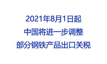 • 2021年8月1日起中國將進(jìn)一步調(diào)整部分鋼鐵產(chǎn)品出口關(guān)稅